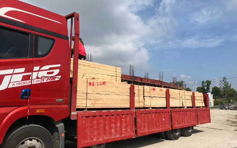 這批模板是發(fā)往廣東梅州的,我們公司在梅州承建了一個樓盤,怪獸木業(yè)建筑模板質(zhì)地非常結(jié)實,鋸成小塊模板不開膠,施工方便,省下很多時間和精力。